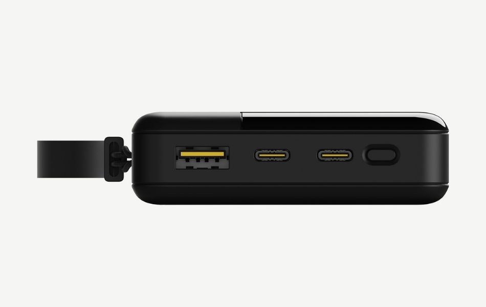 Powerbanken leveres komplett med bærestropp, 30 cm USB-C til USB-C-kabel og manual, slik at du har alt du trenger for å komme i gang med en gang.