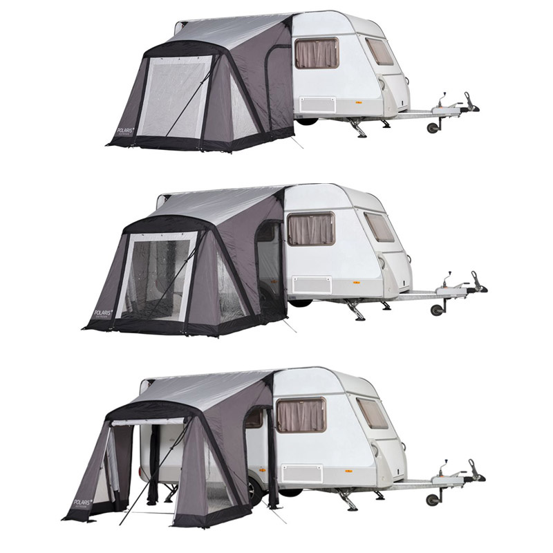 De medfølgende trykkstengene av stål kombinert med skumputer som presses mot campingvognen garanterer maksimal tetthet og at du kan stramme teltet optimalt.