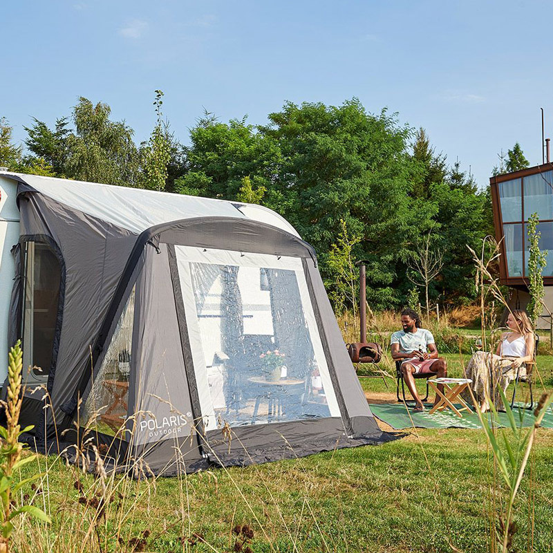 Dette luftteltet er veldig enkelt å sette opp og er et blikkfang på campingplassen. Det er et deltelt og passer på de fleste campingvogner med et horisontalt takparti på minst 260 cm. I stedet for tradisjonelle stenger har teltet en sydd luftkanal som pumpes opp, noe som gir en rask og enkel montering som gjør at du er klar til å nyte campingferien din på null komma niks.