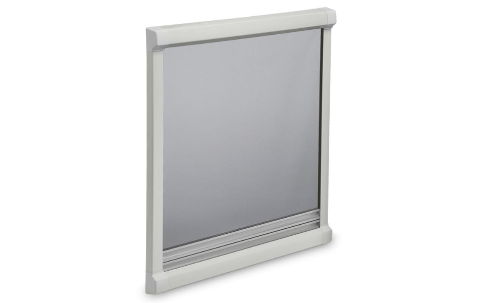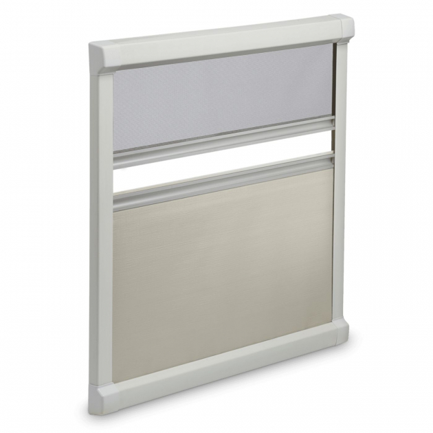 Systemet er formontert for enkel tilpasning til de fleste fritidskjøretøyvinduer. Mørkleggingsgardinen og myggnettet kan justeres separat og i nøyaktige posisjoner, noe som gir maksimal fleksibilitet. Myggnettet kan dessuten festes både oppe og nede, avhengig av behov.