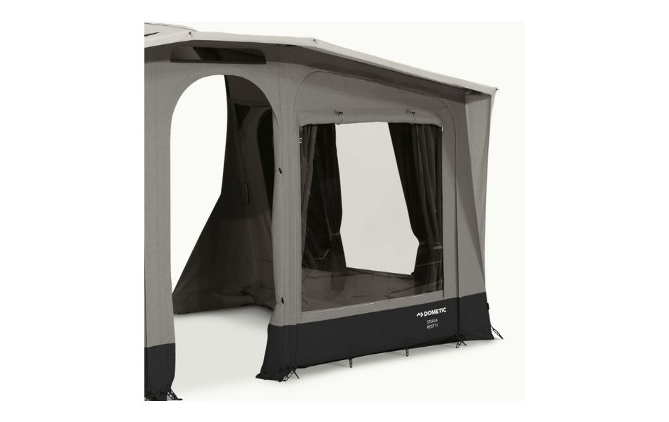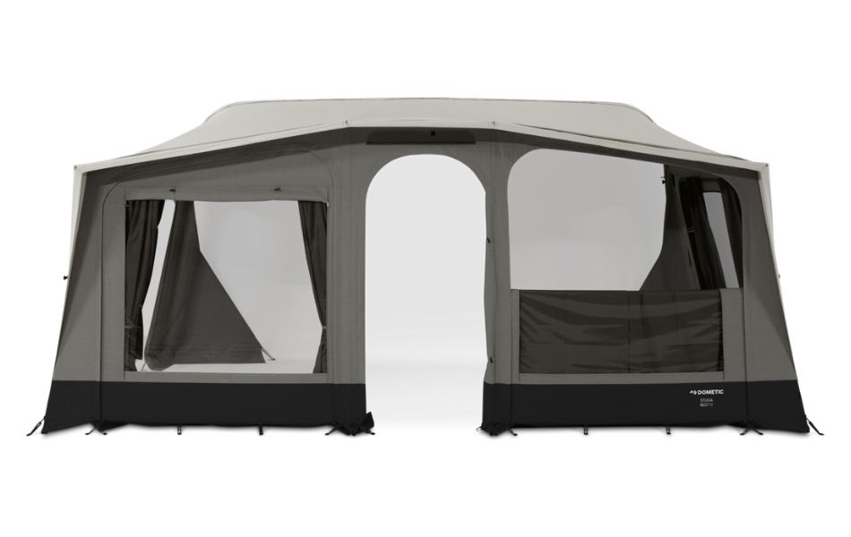 Dometic Stuga Rest er et klassisk A-målstelt med stålstativ og markedets første fortelt i 100 prosent polypropylen. Det dope-fargede materialet gir overlegen UV-motstand, lang holdbarhet, enkel rengjøring og full vanntetthet. Teltet har en sentrert inngang for enkel tilgang, store vinduer med utvendige glidelåsluker for mørklegging samt myke avtakbare gardiner. Det justerbare stålstativet gir stabilitet, og en komfortabel dybde på 250 cm skaper rikelig med plass.