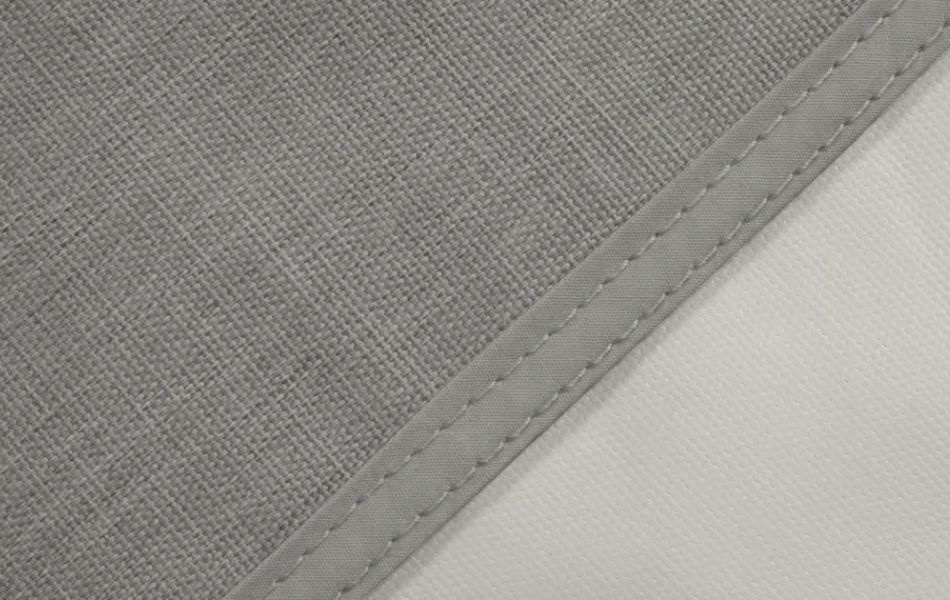 Dope-dye-farget stoff i 100 % polypropylen, utviklet for UV-beskyttelse og fargestabilitet og er naturlig vanntett. Det UV-stabile materialet tåler sollys og regn og er lett å rengjøre, noe som gjør det perfekt for langtidsoppsett.