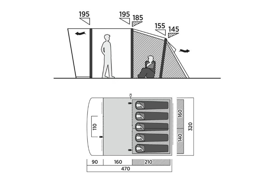 - Romslig familietunneltelt med stort oppholdsrom og regnbeskyttet frontinngang