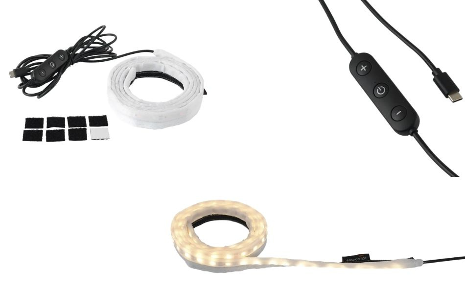 Innhold: LED-lyslist, 8 selvklebende krok-og-løkke lapper