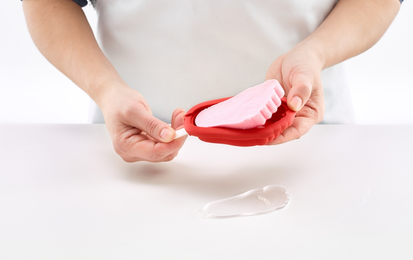 Lokket beskytter innholdet mot lukt og smak i fryseren. Den fleksible silikonformen gjør det enkelt å få ut isen når den er klar. Formene tåler også oppvaskmaskin for enkel rengjøring. - Funksjoner