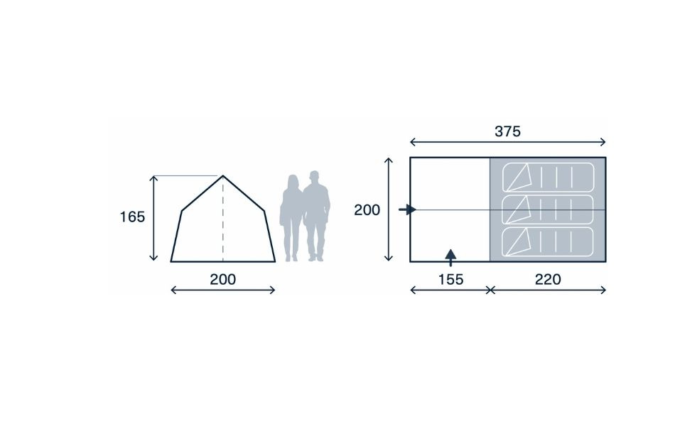Teltet er laget i lett silikonbelagt 68D polyester med aluminiumstenger, noe som gir lav vekt, kompakt pakkestørrelse og høy holdbarhet. Den store dørmarkisen med stenger gir beskyttelse ved inngangen og gjør teltet både praktisk og komfortabelt under varierende værforhold.