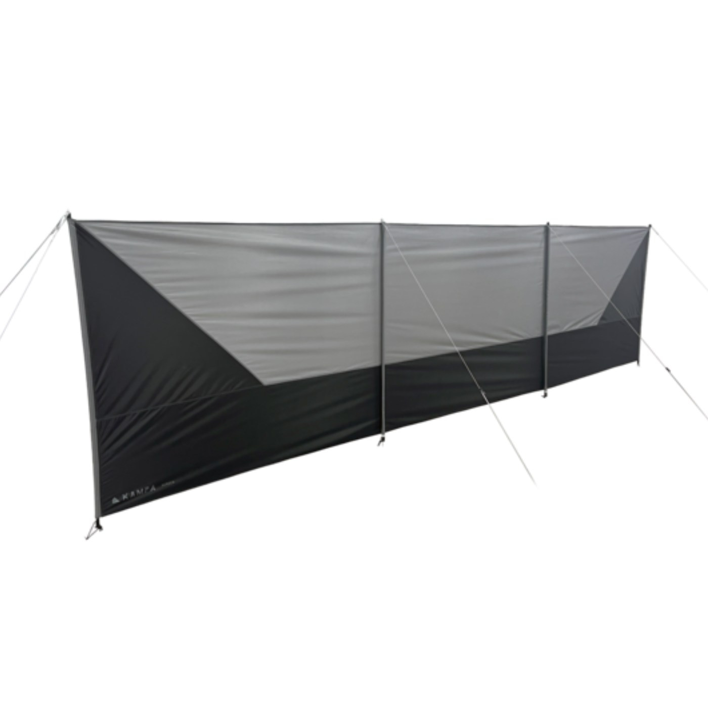 Vindskjermen består av tre seksjoner som sammen gir en total lengde på 450 cm og en høyde på 140 cm. Konstruksjonen med stenger gjør den stabil og enkel å sette opp, og den fungerer perfekt sammen med Kampa teltserien.