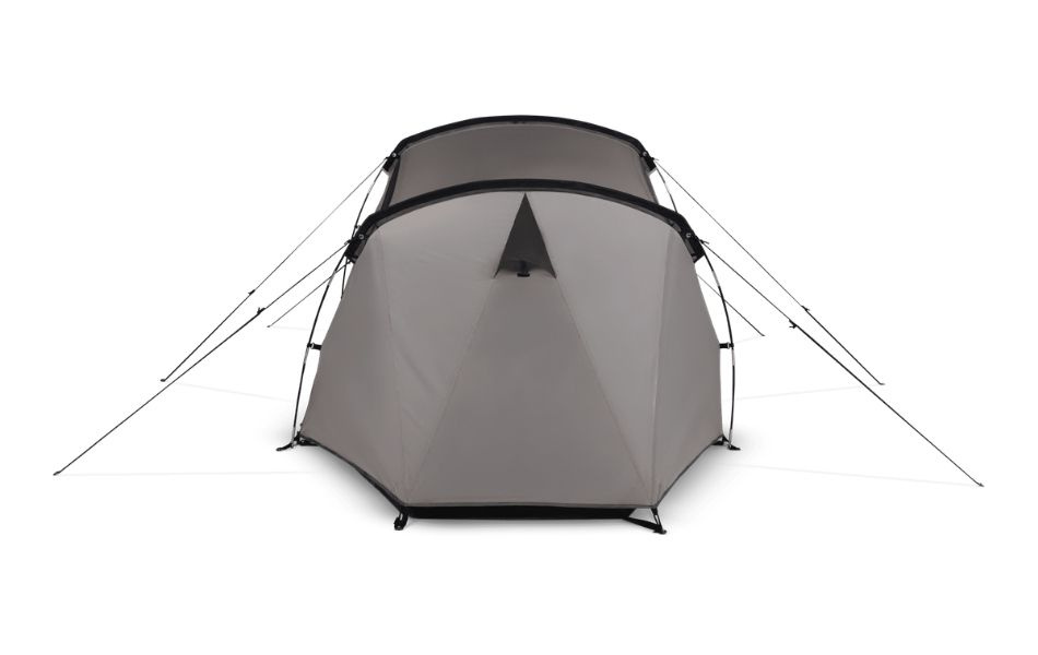 Lett 2 personers telt med tunnelform, separat innertelt og forteltsområde for oppbevaring. Perfekt for vandring, sykkelferie og praktisk camping. Farge Mushroom grå