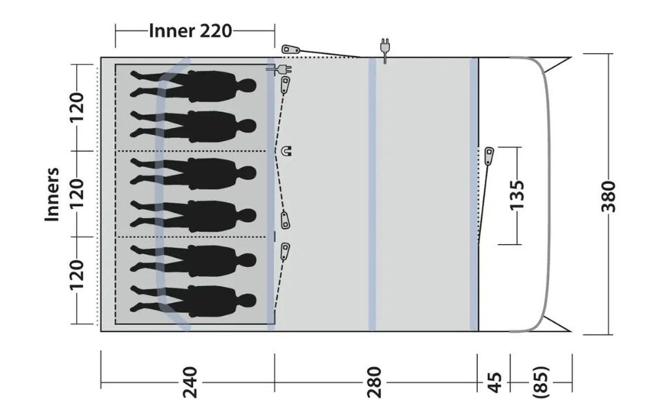 Tekstilsammensetning: Ytterduk 100% polyester, Innertelt 100% polyester, Mesh 100% polyester, Bærebag 100% polyester