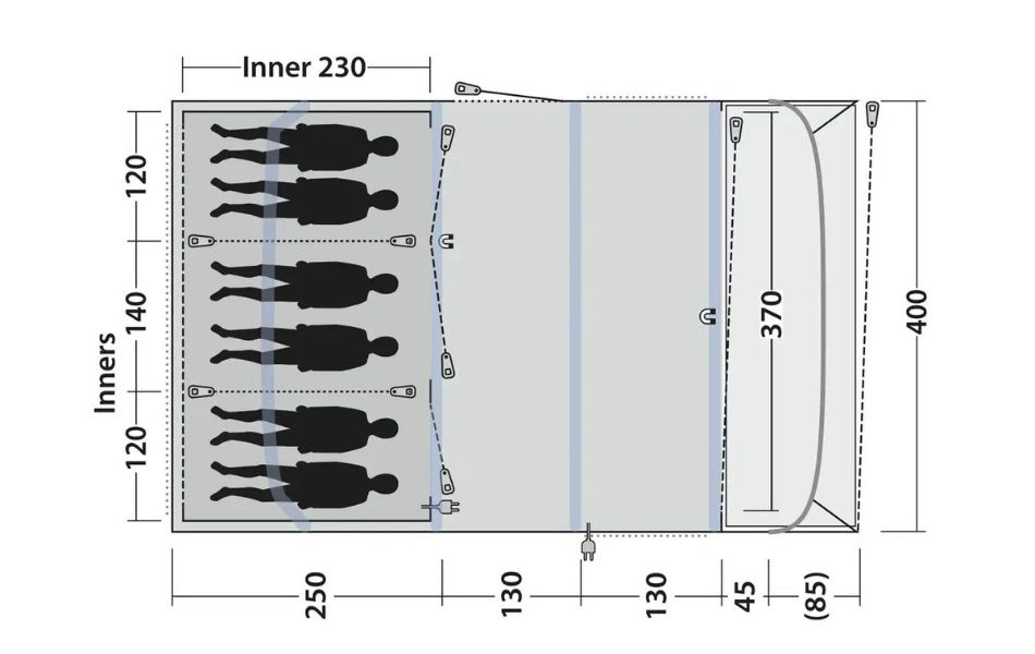 - Integrert patent-pending Outwell Light System gir elegant og effektiv belysning inni teltet (drives via USB-C, strømforsyning ikke inkludert)
