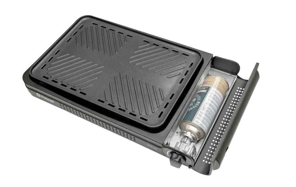 Den avtakbare non-stick-grillen med keramisk belegg gjør rengjøring enkel. Grillen har automatisk piezo-tenning, innebygd overopphetingsbeskyttelse og magnetventil av høy kvalitet. Den bruker en MSF-1A butanpatron integrert i designen, så du slipper å bære ekstra utstyr.