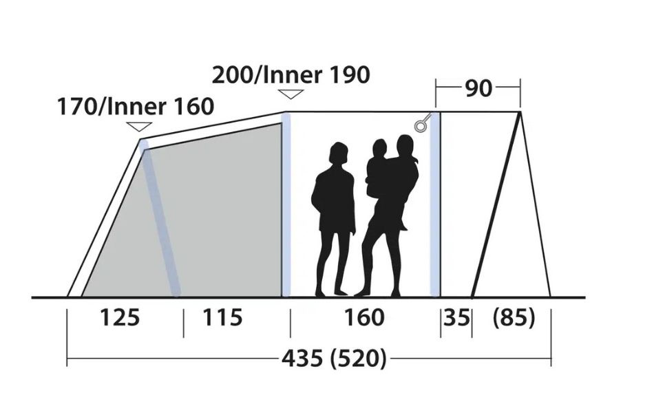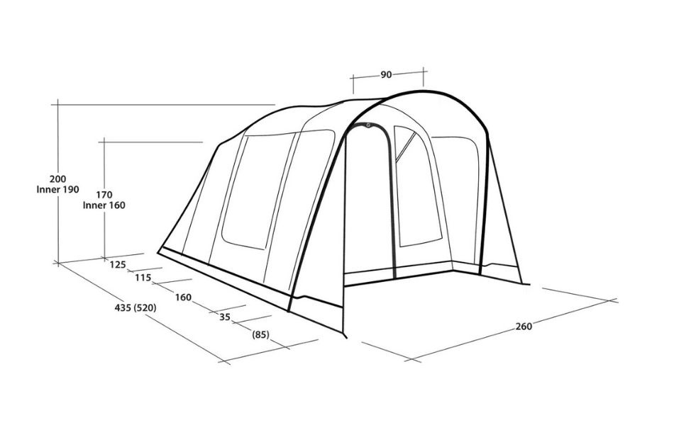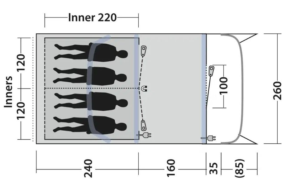 Teltet passer opptil fire personer og er ideelt for mindre familier eller første campingtur med små barn. Ventilasjon via toppen av frontvinduene og bak samt beskyttet ventilasjon under den dype verandaen sikrer optimal luftstrøm. De fleksible oppbrettbare sidene på verandaen gir ulike alternativer for værbeskyttelse.