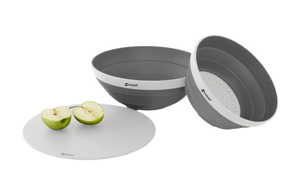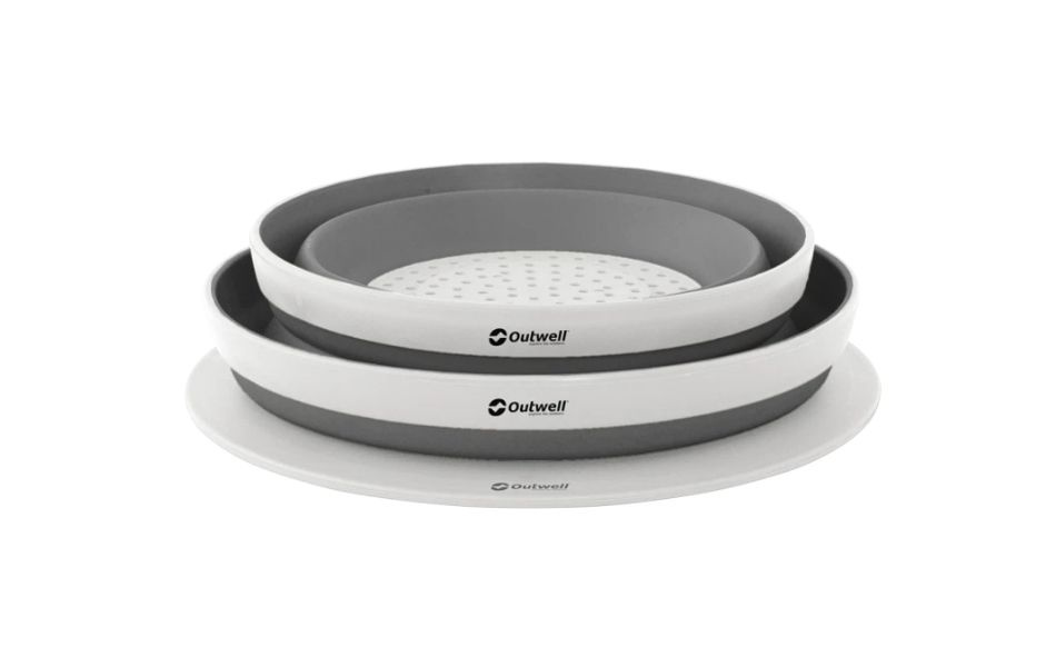 - Sammenleggbar bolle, sil og lokk som kan pakkes sammen