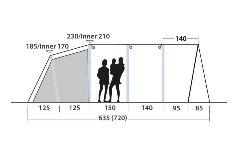 Det patenterte Outwell Light System gir behagelig og effektiv belysning i stuen via valgfri USB-C strømkilde - strømkilde er ikke inkludert. De forformede luftkanalene gir god ståhøyde og stabil konstruksjon, og DuraAir lufttuber er PVC-frie.