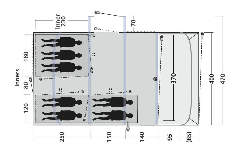 Det innsydd gulvet beskytter mot trekk og smuss, mens den avtakbare gulvdelen i tredje sone gir fleksibilitet. Mørke Ambassador-soverom med mesh-ventilasjon gir bedre sovekomfort. Rain Safe sidedør og bakdør med mesh-panel gir beskyttet og fleksibel tilgang i all slags vær.
