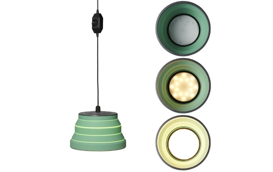 Den praktiske, sammenleggbare lampeskjermen i fleksibel silikon er høydejusterbar og enkel å bruke i forteltet, campingvognen, bobilen, på båten eller hjemme. Lampen gir et behagelig, varmt hvitt lys (3000K) fra 16 SMD LED med 360 lumen, og lysstyrken kan justeres trinnløst via ledningsbryteren. Takket være den sammenleggbare designen tar den minimalt med plass under transport. Leveres med karabinkrok og kabeldeler for enkel oppheng. Inkluderer 5 m kabel og 110–240V adapter.