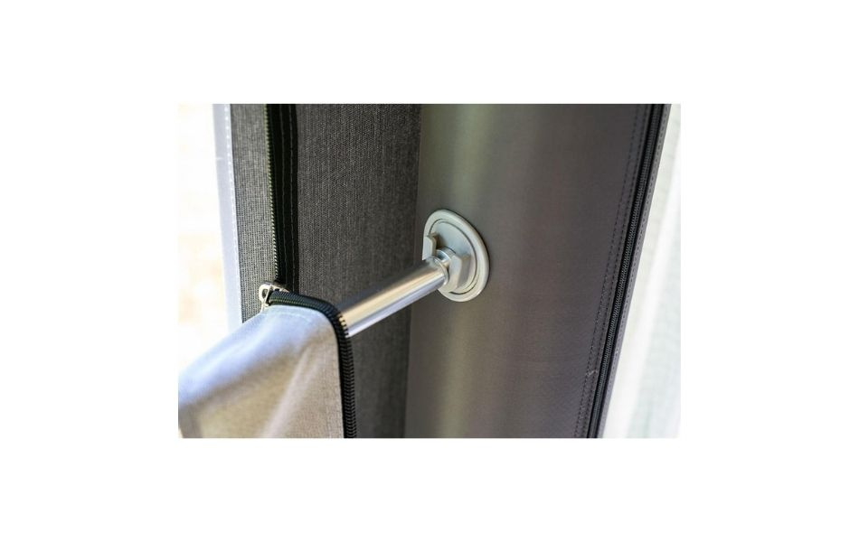 Forteltet har en dybde på 250 cm og kommer i tre bredder (260, 330 og 400 cm) med monteringshøyde 260-280 cm. Sider og fronter kan åpnes helt for å skape et stort soltak eller rulles til siden for ekstra dører og ventilasjon. Verandastangen som følger med gjør det enkelt å lage en koselig veranda. Frontventilasjon og myggnett på sidene sørger for et behagelig inneklima uten insekter.
