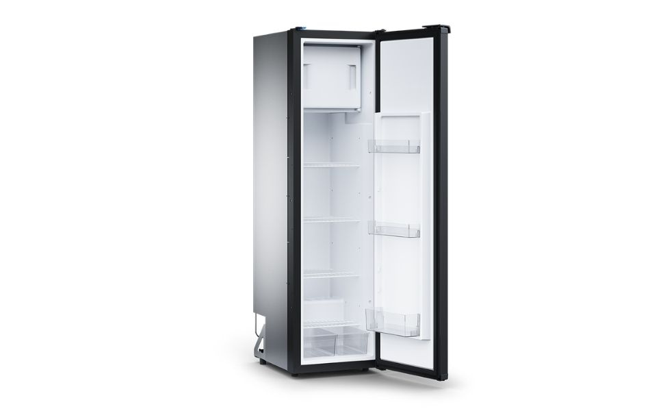 Den kraftige og energieffektive kompressoren tilbyr to driftsmoduser for pålitelig kjøling på dagtid og stillere drift om natten. Dørpanelet i matt svart kan byttes ut og tilpasses kjøretøyets interiør. Temperaturen justeres enkelt via kontrollpanelet inne i kjøleskapet, og dørlåsen fungerer også som ventilasjon utenfor sesong.