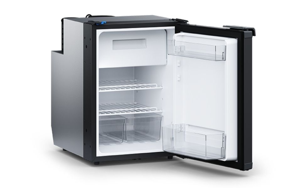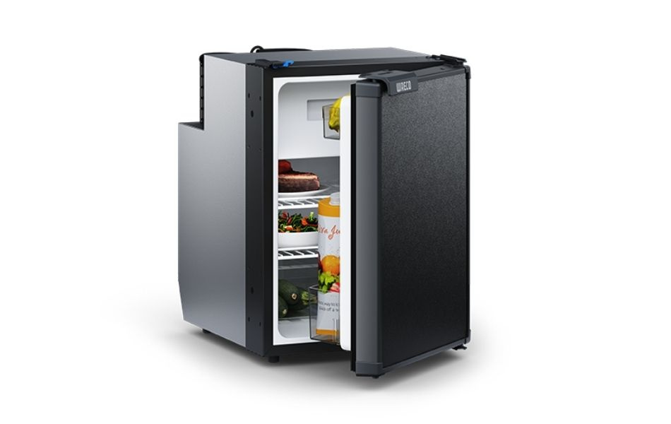Den energieffektive kompressoren tilbyr to driftsmoduser, som gir kraftig kjøling på dagen og stille drift om natten. Dørpanelet i matt svart er utskiftbart og kan tilpasses kjøretøyets interiør. Temperaturen stilles enkelt via kontrollpanelet inne i kjøleskapet, og dørlåsen fungerer også som ventilasjon utenfor sesong.
